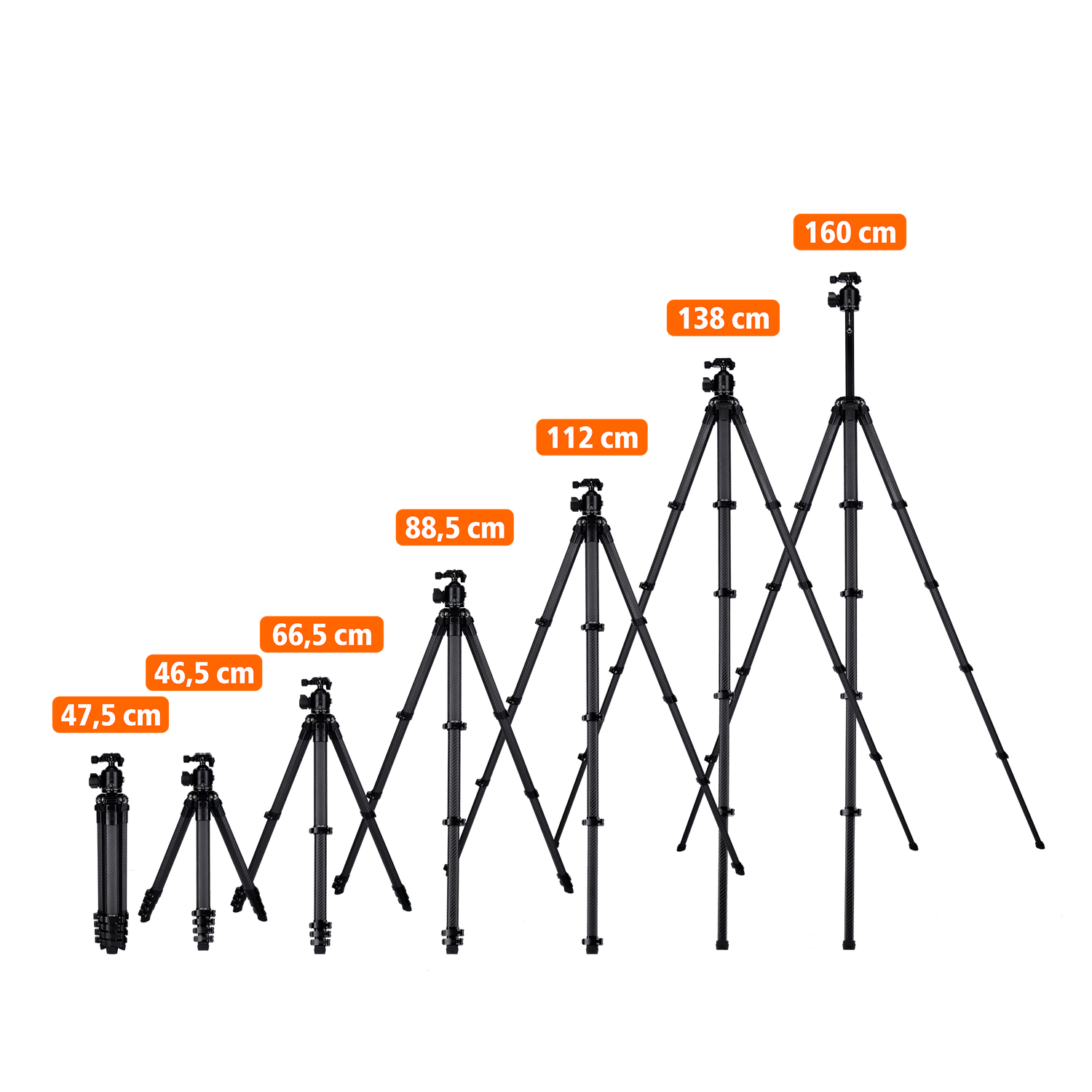 • Das Carbon-Stativ bietet ultimative 20 kg Tragkraft und erreicht eine Arbeitshöhe von 137 cm. Mit einem Gewicht von nur 1,86 kg ist es äußerst transportfreundlich und lässt sich auf kompakte 50 cm zusammenklappen. Die einzigartigen Octagon-Stativbeine sorgen für einen besonders stabilen Stand.